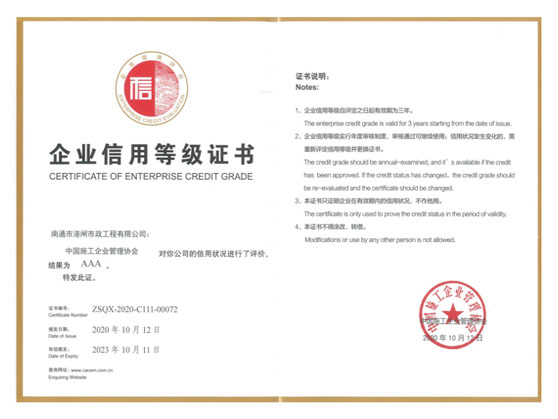 AAA級(jí)企業(yè)信用(中國(guó)施工企業(yè)管理協(xié)會(huì))
