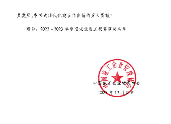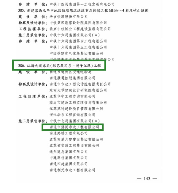 近日,中國施工企業(yè)管理協(xié)會發(fā)布2022-2023年國家優(yōu)質工程獎名單,我公司參建的江海大道東延(綜藝集團東-揚子江路)工程登榜。
