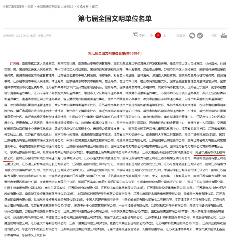5月23日,中國文明網(wǎng)發(fā)布“中央宣傳思想文化工作領(lǐng)導(dǎo)小組關(guān)于認(rèn)定命名第七屆全國文明城市、文明村鎮(zhèn)、文明單位和第三屆全國文明家庭、文明校園的決定”,我公司獲評全國文明單位榮譽(yù)稱號,該獎項是精神文明建設(shè)領(lǐng)域的最高榮譽(yù)。